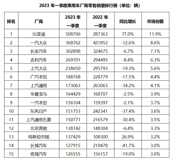 透視2023年一季度國內汽車市場發(fā)展,市場格局正面臨急劇變化。