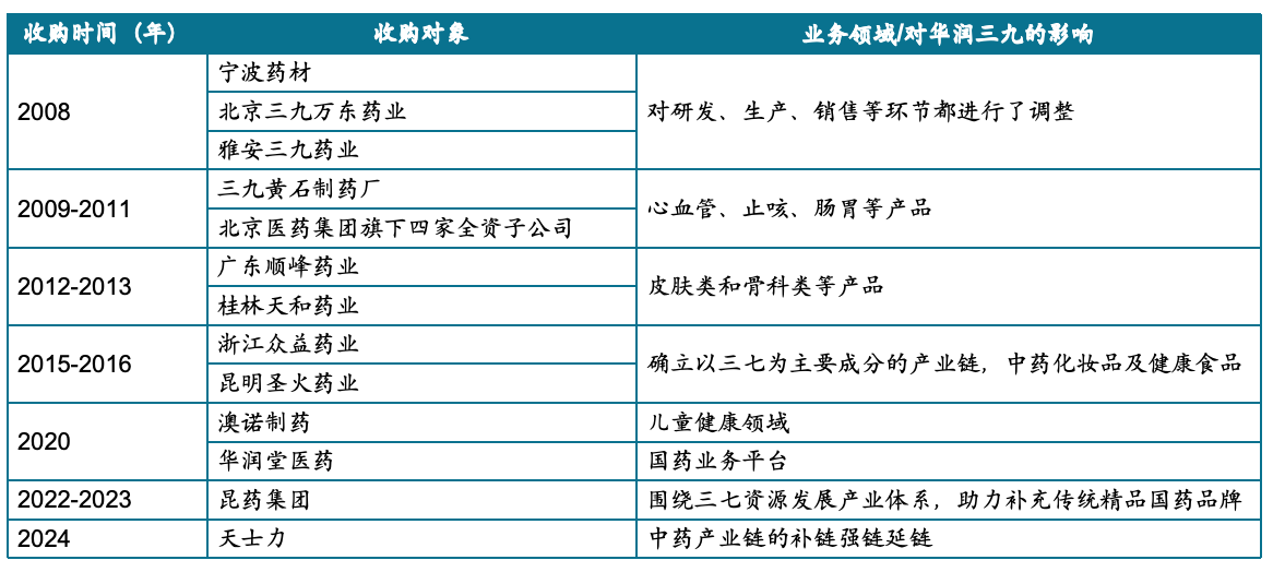 五、華潤(rùn)三九——持續(xù)收購(gòu)實(shí)現(xiàn)全產(chǎn)業(yè)鏈覆蓋