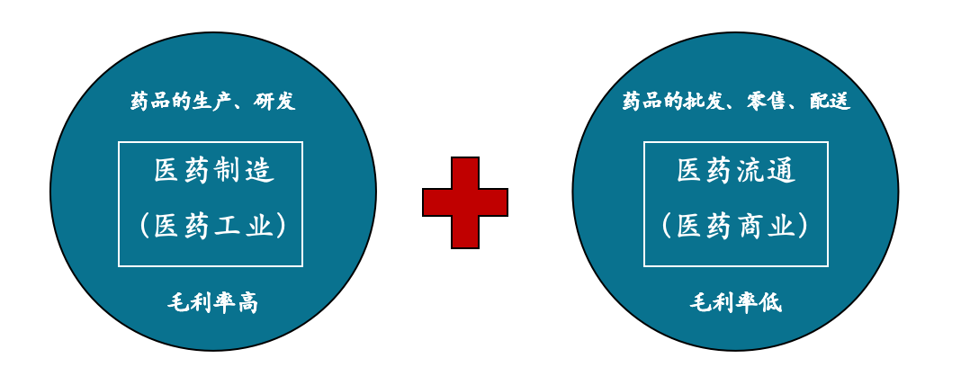 首先,我們先來(lái)了解一下醫(yī)藥公司的業(yè)務(wù)結(jié)構(gòu):大部分醫(yī)藥企業(yè)主要包含醫(yī)藥制造和醫(yī)藥流通兩大業(yè)務(wù)。