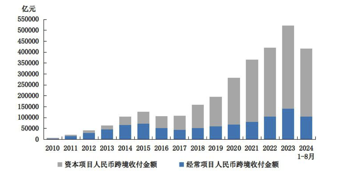 2010-2024 年1-8月人民幣跨境收付情況