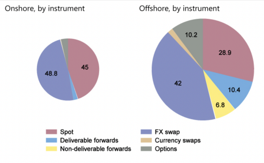 此外,離岸人民幣市場的金融工具也更加多樣化。在外匯市場,香港交易所于2012年9月推出了人民幣期貨產(chǎn)品,新加坡和中國臺北也分別于2014年10月和2015年7月推出了人民幣期貨產(chǎn)品。離岸市場上種類豐富的金融工具可以增加外部投資者們對人民幣的需求,促進人民幣在跨境交易中的使用。